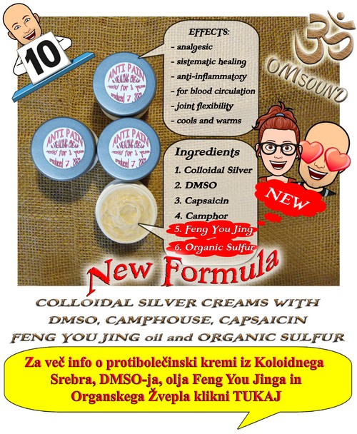 NOVOST!!!! V kremo sva z Nino dodala še KAFRO, KAPSAICIN in nazadnje tudi olje FENG YOU JING-a. Od 17.8.25 naprej pa sem količino kitajskega olja FENG YOU JING podvojil in dodal še ORGANSKO ŽVEPLO (laboratorijske kvalitete),